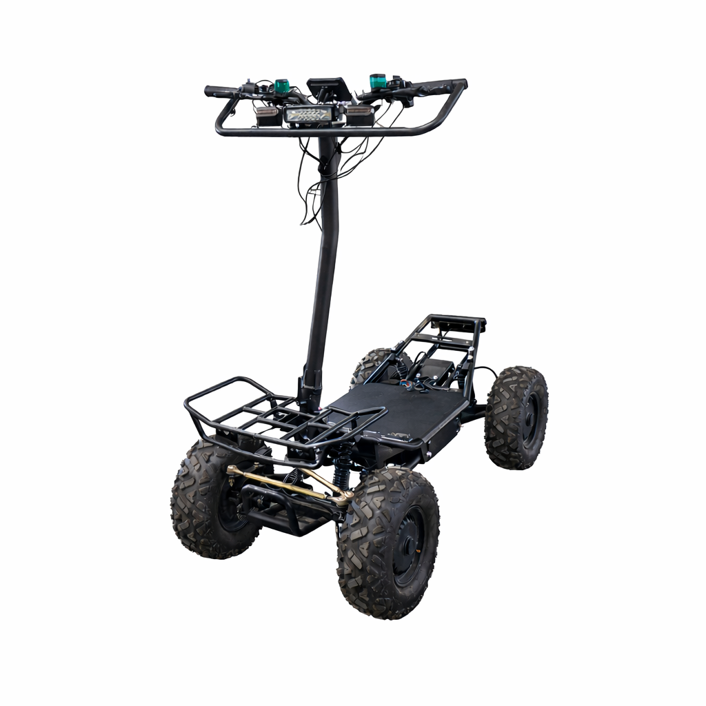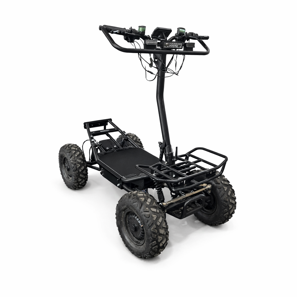 Quick profile: 4-wheel electric scooter / all-terrain utility platform / 4 hub motors / 2WD and 4WD switchable / folding structure / dealer-ready specification page